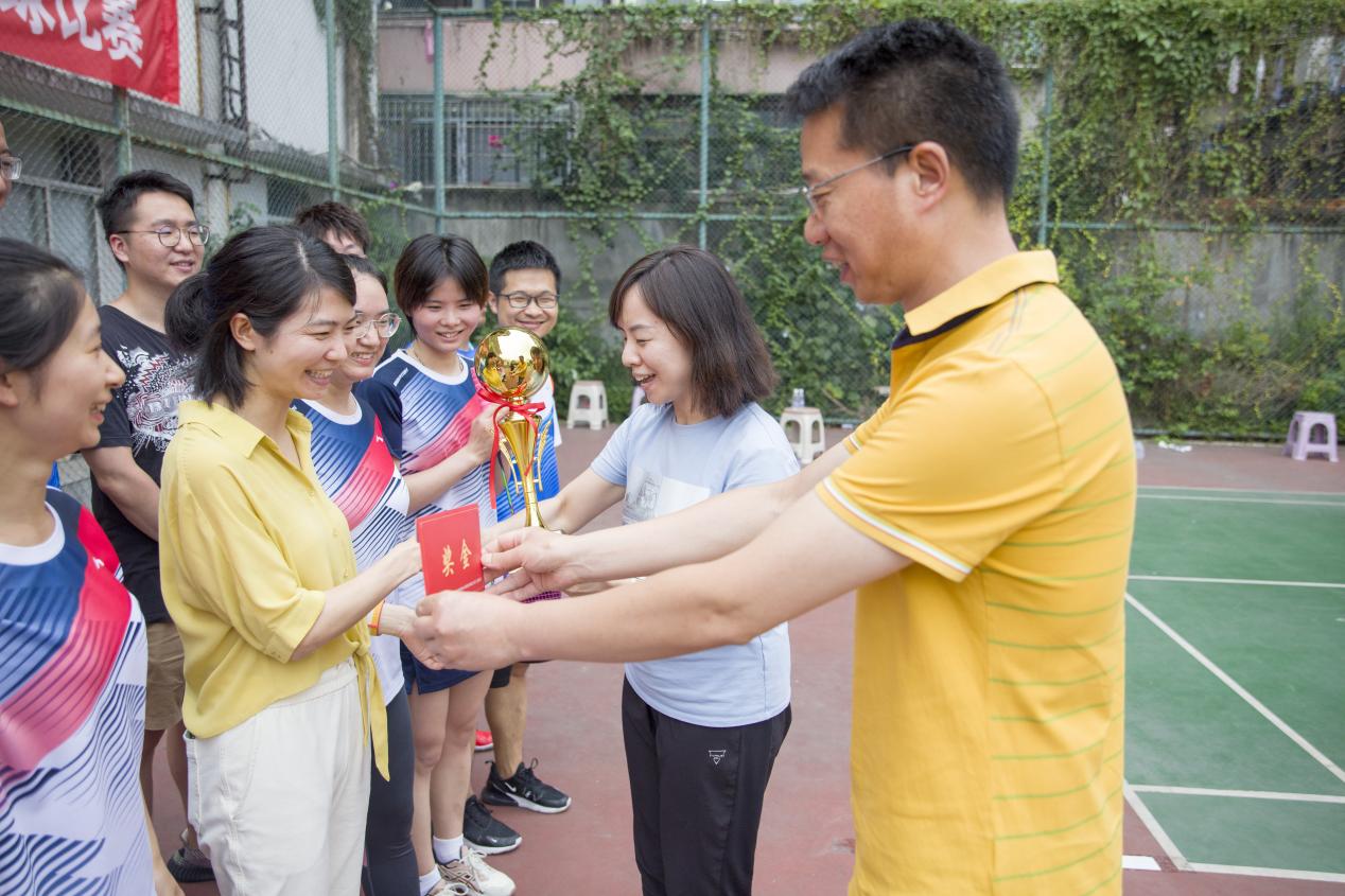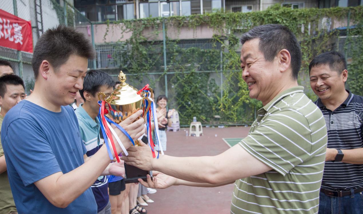 公司黨委副書記、董事、總經(jīng)理周武平為冠軍頒獎并合影留念