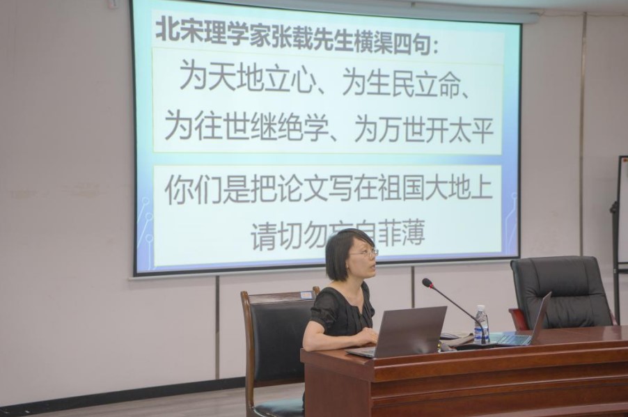王靜同志以北宋理學(xué)家張載的橫渠四句“為天地立心、為生民立命、為往圣繼絕學(xué)、為萬世開太平”為中心思想,分享學(xué)習(xí)、工作經(jīng)歷,講解專業(yè)知識,激勵青年同志要堅守初心、不負時代、不負韶華,踔厲奮發(fā)、勇毅前行,奮力書寫新時代青春答卷。
