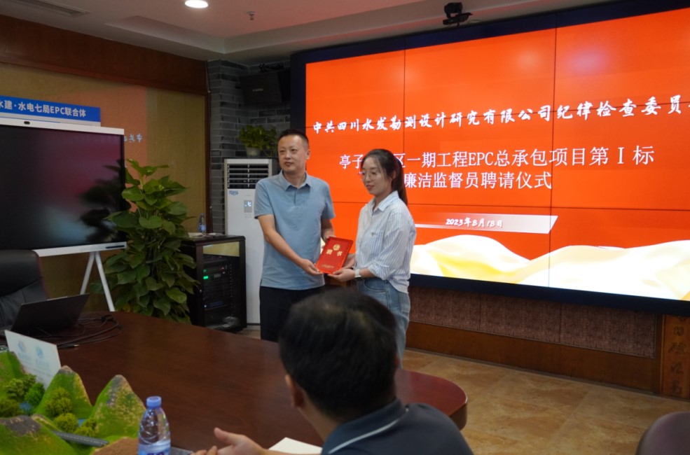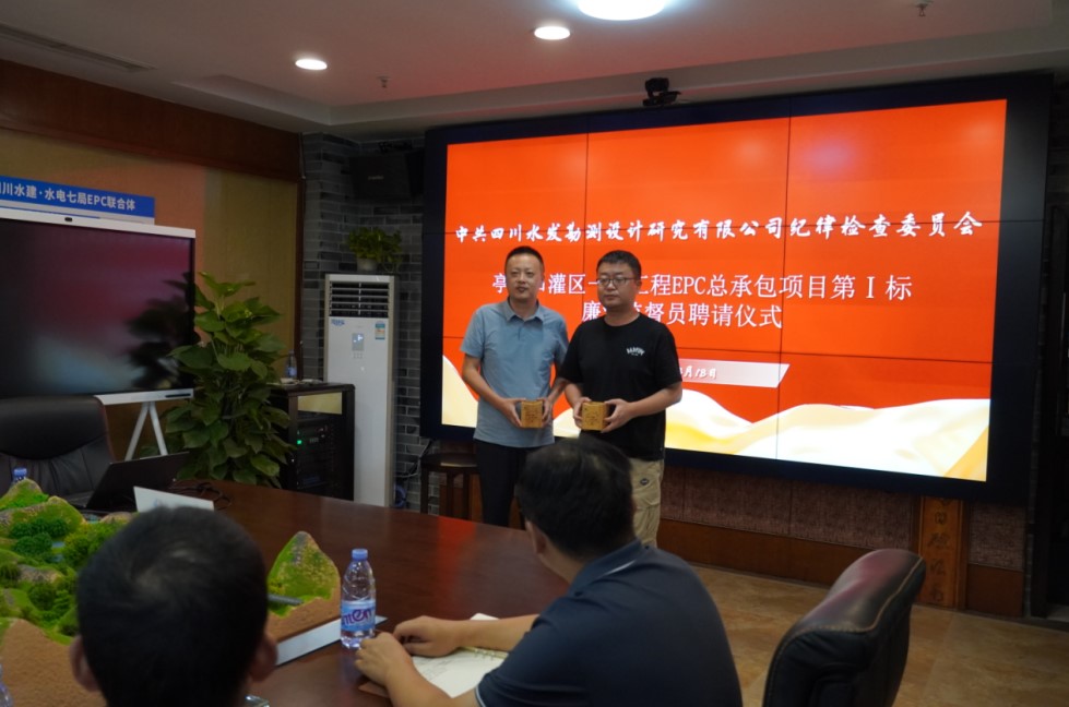 公司紀檢監(jiān)察部負責人宣讀了公司紀委《關于聘任亭子口灌區(qū)EPC總承包項目第Ⅰ、Ⅱ標廉潔監(jiān)督員的通知》,姚磊為2個標段廉潔監(jiān)督員頒發(fā)聘書,廉潔監(jiān)督員伍代富、顧楠作了表態(tài)發(fā)言。