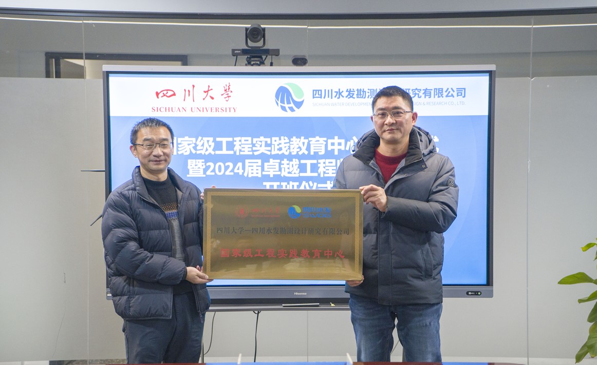 1月4日上午,四川大學(xué)和四川水發(fā)勘測(cè)設(shè)計(jì)研究有限公司共建國(guó)家級(jí)工程實(shí)踐教育中心揭牌儀式暨2024屆卓越工程師實(shí)踐班開班儀式在公司舉行。四川大學(xué)水利水電學(xué)院副院長(zhǎng)謝紅強(qiáng),公司黨委專職副書記、董事楊志宏等領(lǐng)導(dǎo)與公司相關(guān)部門負(fù)責(zé)人和校企導(dǎo)師代表出席儀式。