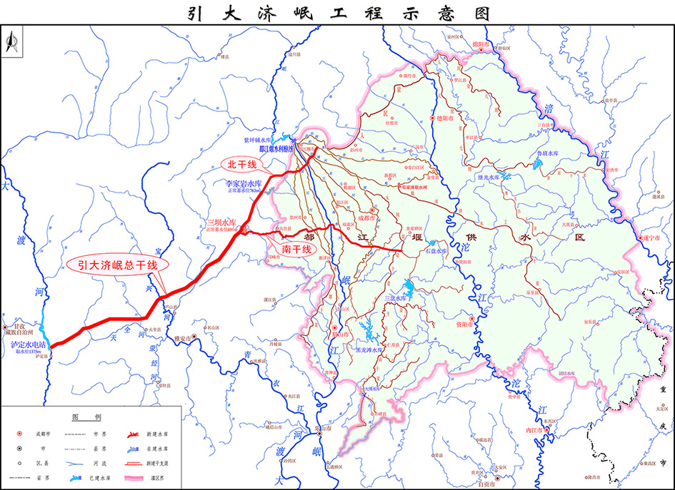 按照推薦方案,引大濟(jì)岷工程以大渡河為集中水源,自流引水25億立方米至都江堰供水區(qū),形成以三壩水廠、羅家河壩分水閘和柏條河等為主要交水點(diǎn)的”北干線+預(yù)留南干線“方案,進(jìn)而切實(shí)構(gòu)建成都平原岷江、大渡河雙水源水資源配置保障格局,都江堰、引大濟(jì)岷工程雙輸水通道供水安全保障體系。