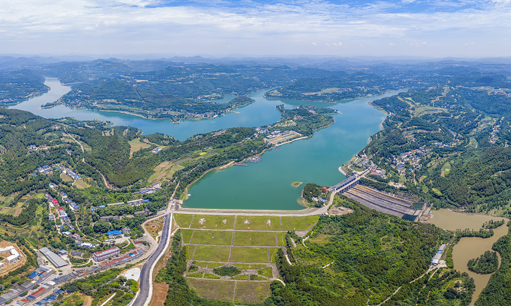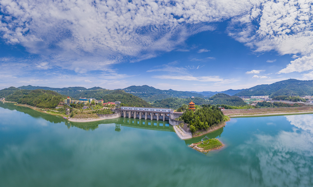 升鐘水利工程控灌南充市轄區(qū)內(nèi)的南部、閬中、西充、順慶、嘉陵、蓬安、儀隴以及廣安市的武勝、遂寧市的蓬溪、廣元市的劍閣縣等十縣(市、區(qū))的204.74萬畝耕地。該工程由樞紐工程和灌區(qū)配套工程兩大部分組成。樞紐工程由大壩、溢洪道、放空隧洞和左右干渠取水口及電站等五大部分組成。大壩壩址位于南部縣升水鎮(zhèn)碑埡廟河段,控制流域面積1756km2,水庫總庫容為13.39億m3,有效庫容為6.72億m3,防洪庫容為2.71億m3,墊底庫容為3.96億m3,五日設計洪水洪量為9.70億m3,五日校核洪水洪量為13.40億m3。