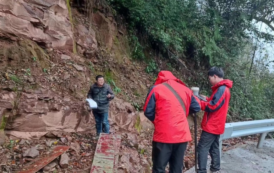 2022年12月,由梁洪、曾攀、范時(shí)杰、蘭小平組成的水文地質(zhì)組奮戰(zhàn)在工程現(xiàn)場。瀑布溝取水方案目前最重要的難點(diǎn)問題就是大相嶺隧洞的水文地質(zhì)條件及隧洞涌突水量大,該問題直接關(guān)系到瀑布溝方案的合理性與可行性。組員們深感責(zé)任重大,任務(wù)艱巨。正在攻堅(jiān)的關(guān)鍵時(shí)刻,又趕上了疫情高發(fā)期,組員們不可避免地相繼被病毒侵襲。項(xiàng)目組與時(shí)間賽跑,與病毒鏖戰(zhàn),他們感染后僅僅休息了兩三天,在高燒剛退,喉嚨還是劇痛幾乎發(fā)不出聲,全身乏力等身體狀況下,就做好防護(hù)措施繼續(xù)開展現(xiàn)場外業(yè)工作?!昂?,晨起踐嚴(yán)霜”。山路野草遍布,他們的褲腿被草葉上的濃霜寒露濕透,朔風(fēng)凜冽刮在臉上,本就虛弱的身體冷得顫抖,不時(shí)彎下腰劇烈咳嗽,但還是忍著不適一絲不茍地工作。他們說“自己病了是小事,公司的事是大事,不能因?yàn)樽约喊压て诮o耽誤了?!闭沁@種對(duì)水利事業(yè)兢兢業(yè)業(yè)、公而忘私的精神支撐著他們負(fù)重前行。經(jīng)過大量的現(xiàn)場外業(yè)調(diào)查工作,對(duì)相關(guān)基礎(chǔ)數(shù)據(jù)的模擬及科學(xué)精準(zhǔn)的分析,對(duì)大相嶺隧洞涌水量及涌突水危險(xiǎn)性做出了預(yù)測,為方案提供了技術(shù)支撐。