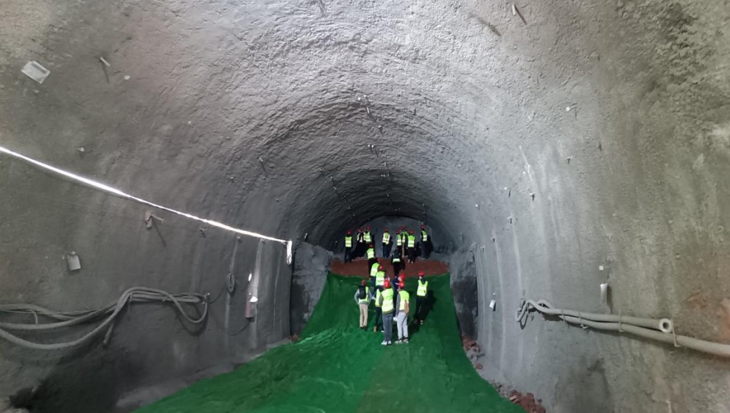 全體人員首先在現(xiàn)場(chǎng)施工人員的帶領(lǐng)下參觀成都軌道交通13號(hào)線一期工程土建7工區(qū)三圣花鄉(xiāng)站施工現(xiàn)場(chǎng),就全國(guó)最大的大跨度中庭無(wú)柱弧形拱頂車(chē)站施工(幸福梅林站)、淺埋大直徑膨脹性黏土巖隧洞施工、初期支護(hù)、道路防沉降、220KV高壓線下安全防控措施等技術(shù)進(jìn)行了現(xiàn)場(chǎng)交流。