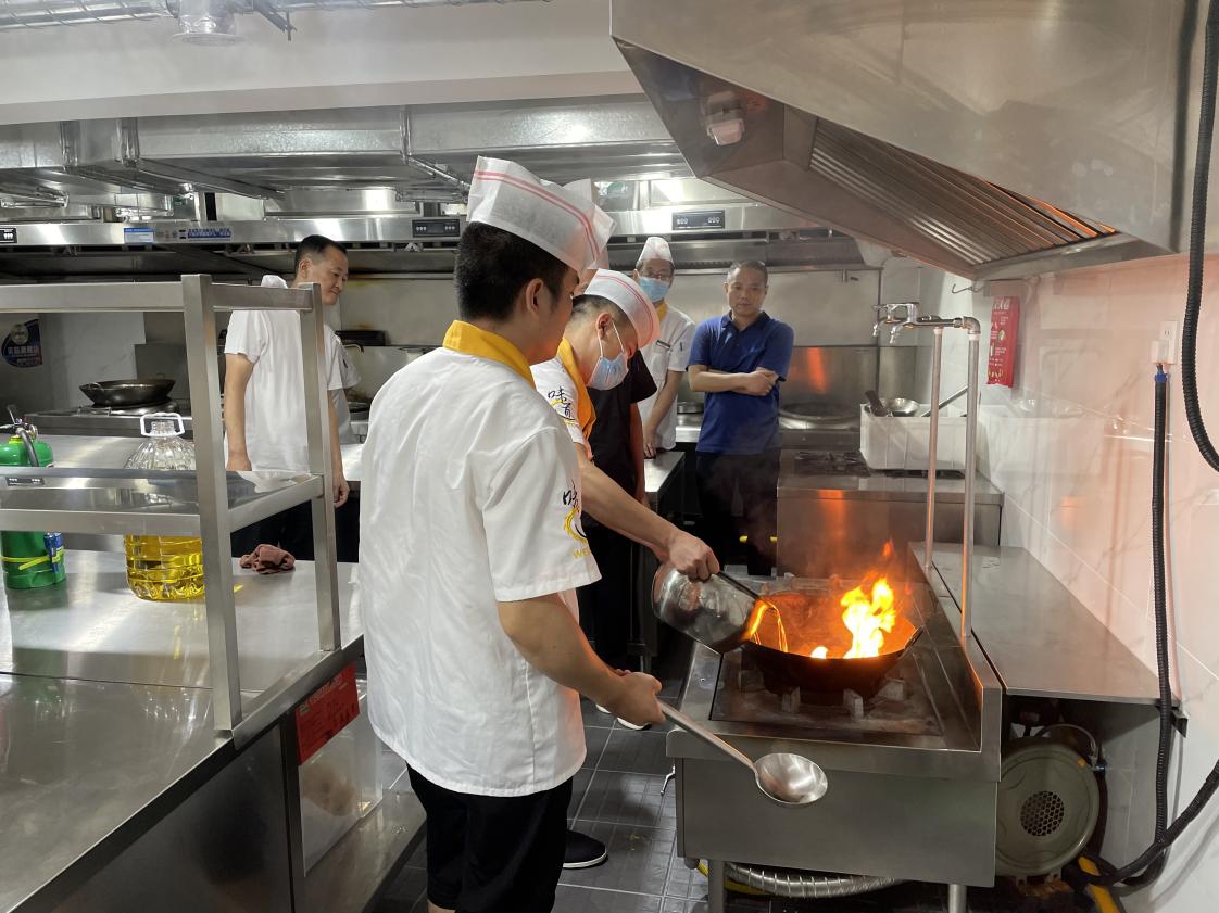安環(huán)部、后服部因地制宜、結(jié)合實(shí)際進(jìn)行操作演練,針對(duì)如何快速有效地處理食堂后廚火災(zāi)事件,以及后廚團(tuán)隊(duì)通過(guò)實(shí)戰(zhàn)操作得出結(jié)論──“關(guān)閉燃?xì)?、使用冷油、再使用滅火器”的操作流程是最有效的處理方法?/p>