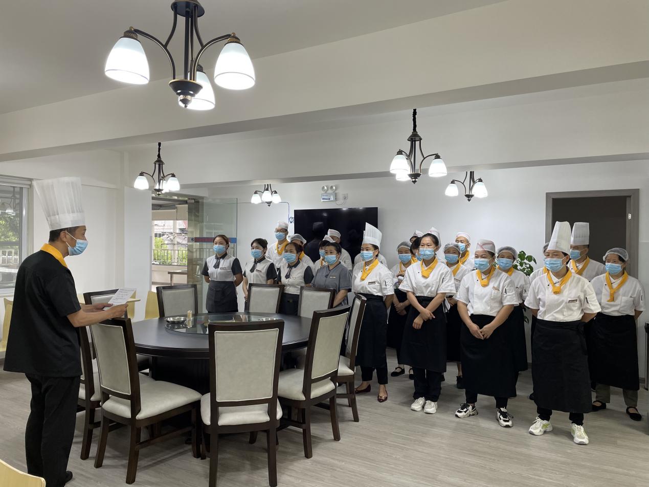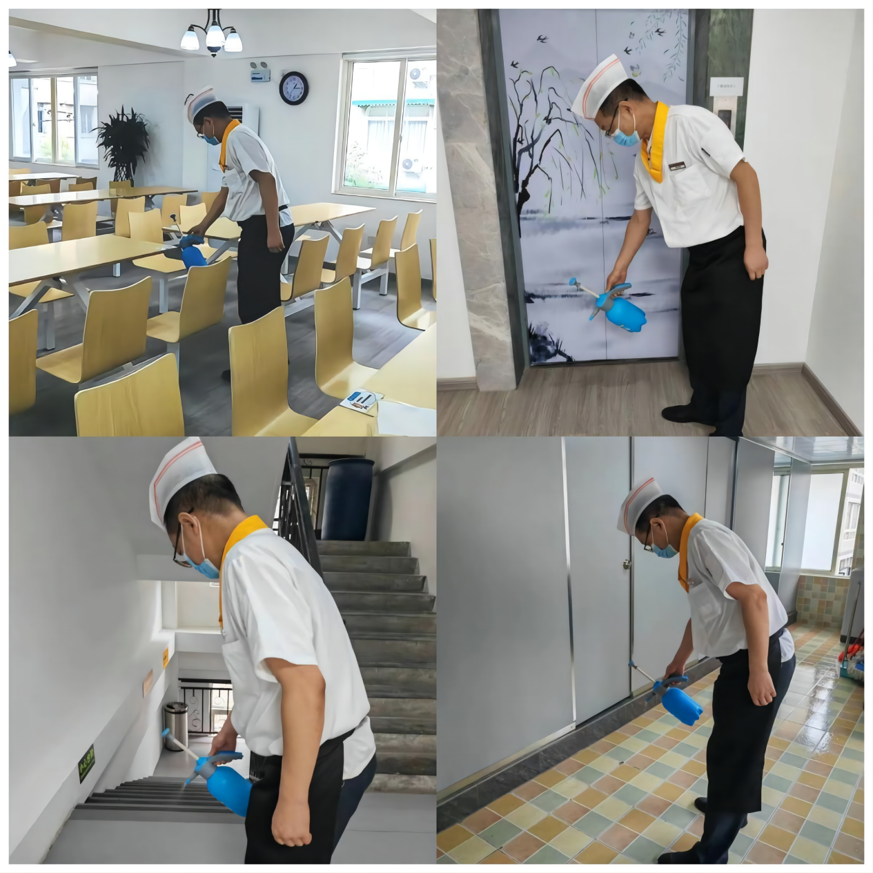在保障供餐服務(wù)外,還著重加強人員管控和環(huán)境消殺。對所有進(jìn)入食堂的人員進(jìn)行測溫、驗碼。強化單位食堂從業(yè)人員健康管理,嚴(yán)格執(zhí)行晨報制度,全程規(guī)范佩戴口罩上崗,對于直接接觸食物者應(yīng)全程佩戴一次性手套。加強各區(qū)域消殺頻次,尤其是封閉區(qū)域如電梯間、安全通道、廁所等公共場所,嚴(yán)格落實生活垃圾分類投放、分類收集、分類運輸和消毒等日常管理制度。