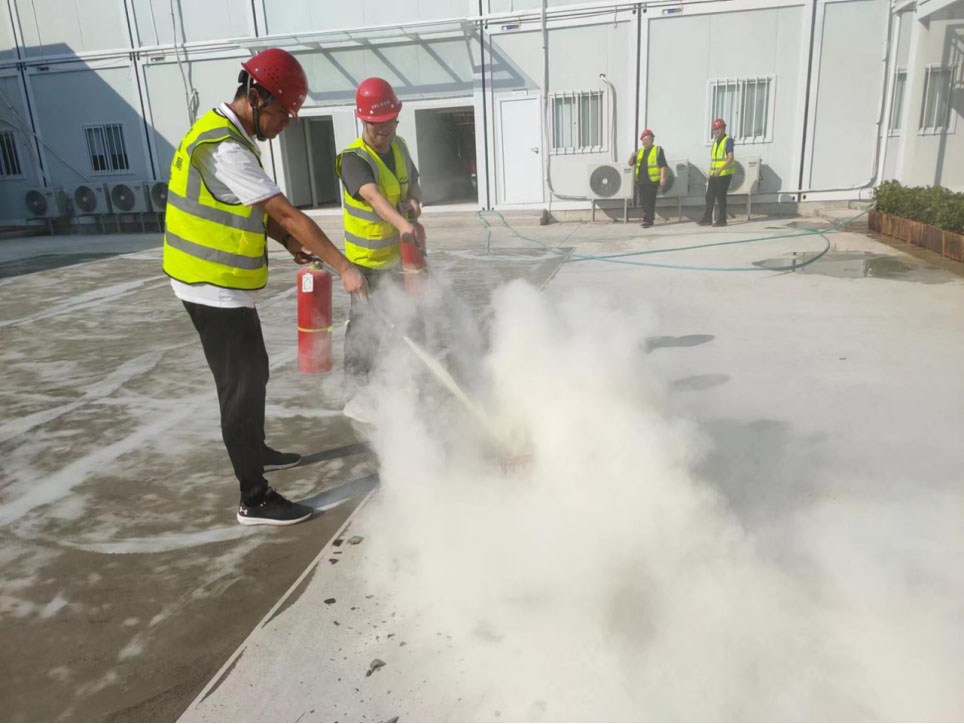 消防應(yīng)急演練前項(xiàng)目部做了詳盡培訓(xùn)及消防器材的正確使用培訓(xùn)工作。發(fā)現(xiàn)險(xiǎn)情后現(xiàn)場(chǎng)安全員按應(yīng)急預(yù)案流程進(jìn)行逐級(jí)上報(bào),并立即啟動(dòng)應(yīng)急響應(yīng),各相關(guān)應(yīng)急小組迅速投入搶救受傷人員,撲救火災(zāi)、疏散撤離人員、轉(zhuǎn)移現(xiàn)場(chǎng)貴重物資及危險(xiǎn)品。在各應(yīng)急小組人員有條不紊的工作下,火災(zāi)被撲滅,受傷人員得到救治,未造成經(jīng)濟(jì)損失。演練順利結(jié)束,解除警報(bào)。