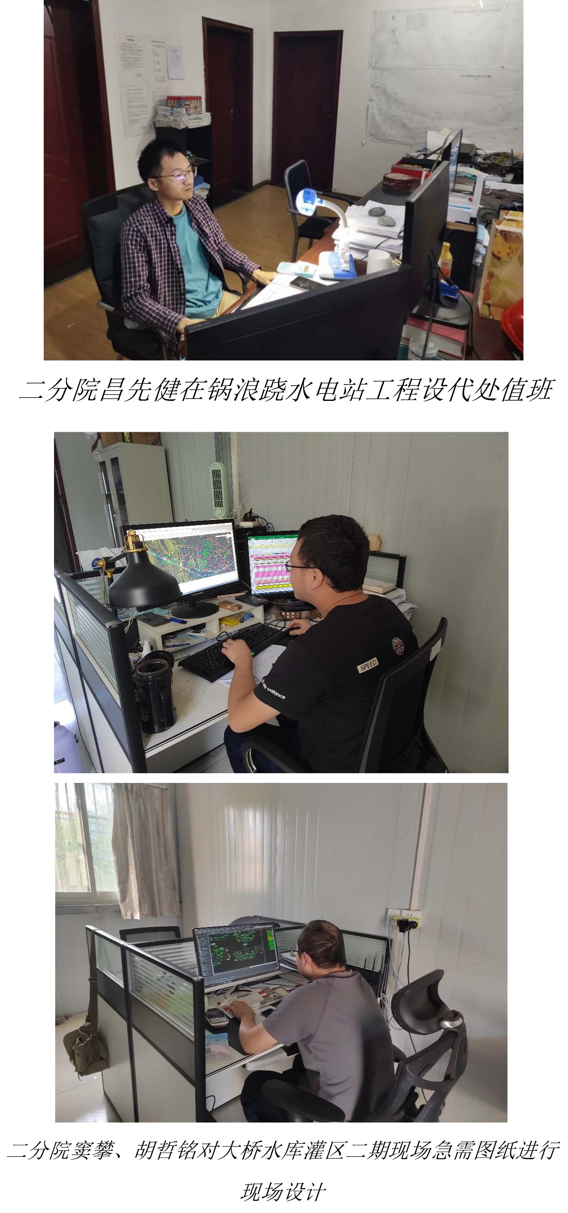 工程設(shè)計(jì)二分院以向家壩一期二步工程、引大濟(jì)岷工程、固軍水庫(kù)為代表的項(xiàng)目在公司辦公地點(diǎn)集中加班,為項(xiàng)目的高效推進(jìn)、確保各節(jié)點(diǎn)目標(biāo)的順利完成,貢獻(xiàn)一線設(shè)計(jì)人員的力量。亭子口工程、大橋水庫(kù)灌區(qū)二期工程、鍋浪蹺水電站、李家?guī)r水庫(kù)工程、向家壩一期一步工程等施工項(xiàng)目的設(shè)代點(diǎn),二分院的同志們也在為項(xiàng)目無(wú)私奉獻(xiàn)。