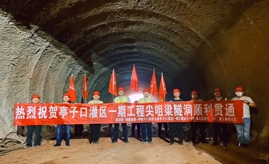 尖咀梁隧洞設(shè)計(jì)全長(zhǎng)492.93米,屬高風(fēng)險(xiǎn)等級(jí)隧洞,全段均為V類圍巖,洞口仰坡陡立,洞內(nèi)裂隙水豐富。為保證在關(guān)鍵節(jié)點(diǎn)工期內(nèi)順利完工,由四川水發(fā)設(shè)計(jì)牽頭的第Ⅱ標(biāo)EPC總包部多次組織參建各方專題研究施工難點(diǎn),不斷優(yōu)化設(shè)計(jì)、施工方案,倒排工期,科學(xué)合理安排施工,克服了沉降量大、滲水嚴(yán)重、穿越斷層等不良地質(zhì)的施工難題,經(jīng)過187個(gè)工作日的頑強(qiáng)拼搏,提前計(jì)劃工期98天實(shí)現(xiàn)貫通。