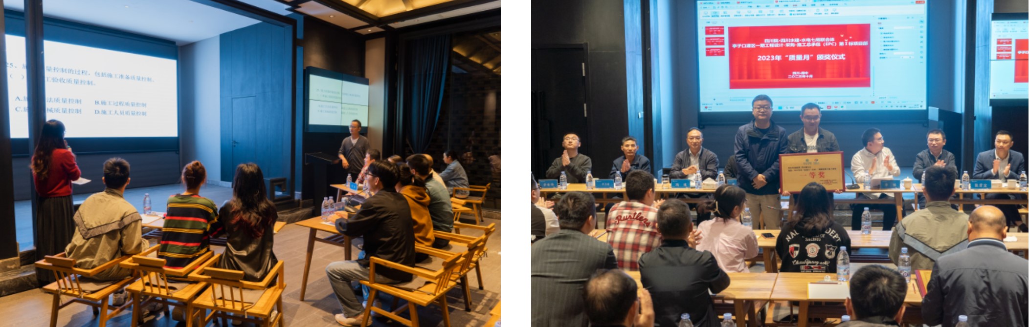 10月13日,EPC項目部組織召開2023年“質(zhì)量月”總結(jié)會,并舉辦了一場別開生面的“質(zhì)量知識競賽”。題目設(shè)置靈活多樣,內(nèi)容涵蓋了技術(shù)質(zhì)量規(guī)范、施工檢測、設(shè)計質(zhì)量及要求以及其他業(yè)務(wù)板塊知識等。來自EPC項目部、四川水建項目部、水電七局項目部的18名選手,組成了6支參賽隊伍進行競賽。知識競賽以現(xiàn)場搶答的形式進行,比賽過程中,各隊競爭激烈、不分高下,嘉賓觀眾也參與其中,現(xiàn)場一片火熱,經(jīng)過激烈的角逐,產(chǎn)生了本次競賽的冠軍,在頒獎環(huán)節(jié)后,活動拉下了帷幕。