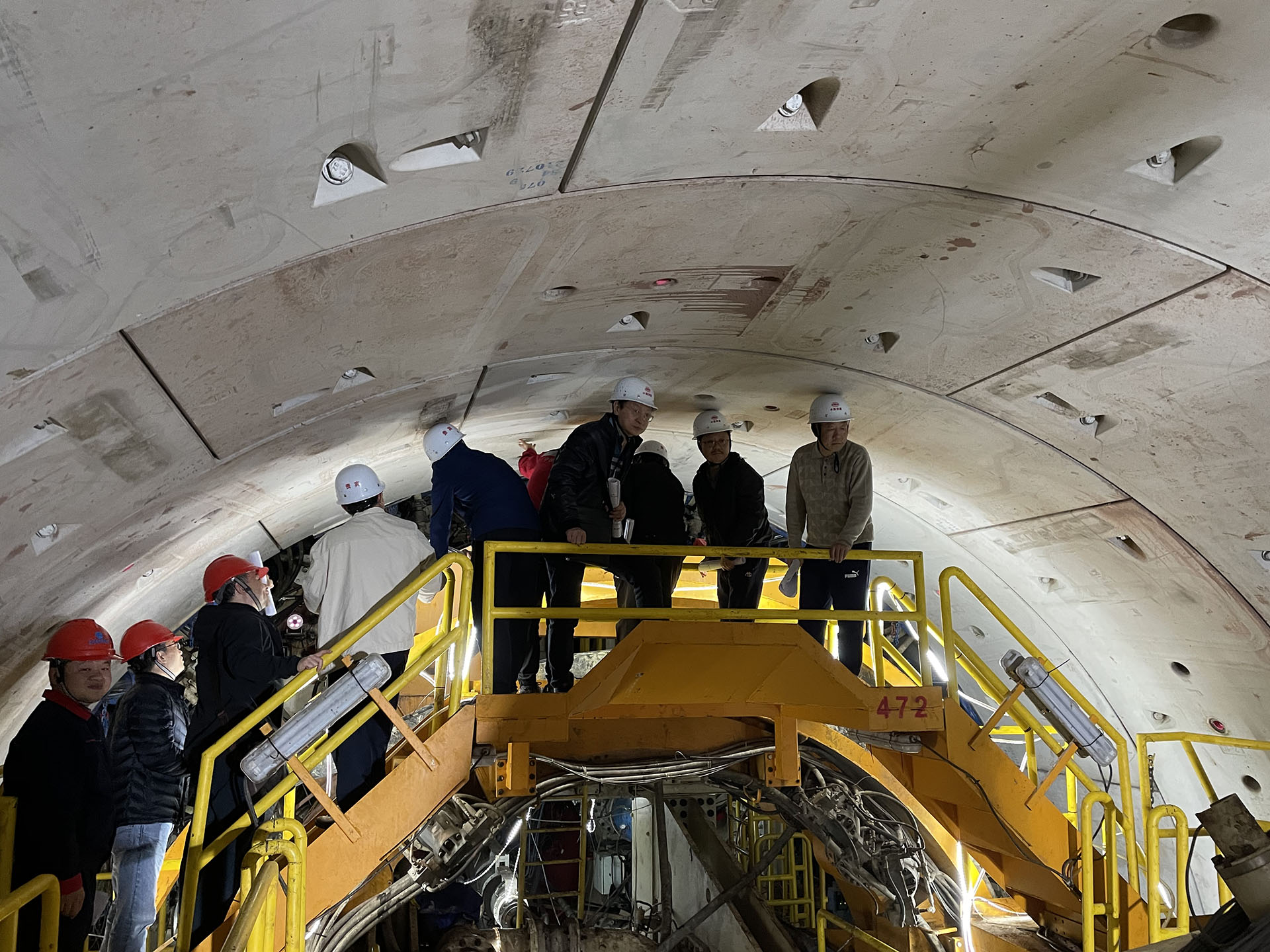 11月4日,公司副總工程師鄭小明、何平、覃克非、李自繁、李葉、付進(jìn)等在生技部主任杜鵬、項(xiàng)目副設(shè)總況磊強(qiáng)、李成剛、楊躍東等人陪同下到宜賓市向家壩灌區(qū)一期工程貓兒沱穿江隧洞盾構(gòu)工地開展現(xiàn)場(chǎng)調(diào)研。向家壩灌區(qū)工程水工和地質(zhì)等現(xiàn)場(chǎng)設(shè)代人員陪同現(xiàn)場(chǎng)考察調(diào)研。