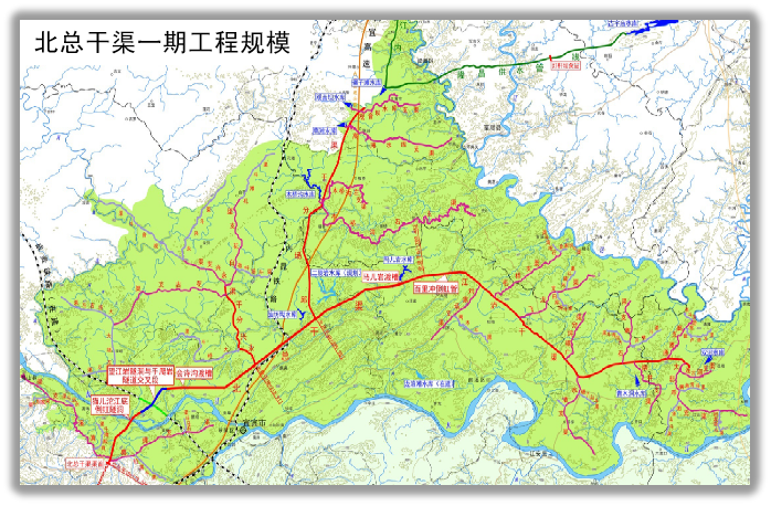 向家壩灌區(qū)工程是向家壩水電站綜合開發(fā)利用任務(wù)確定的配套工程。規(guī)劃以長江為界,分為北總干渠、南總干渠。工程范圍涉及四川省宜賓市、自貢市、內(nèi)江市、瀘州市和云南省水富市22個(gè)區(qū)縣。規(guī)劃灌面530萬畝,同時(shí)向宜賓、自貢、內(nèi)江、隆昌、瀘州等城市工業(yè)和生活供水,年平均取水量17.82億m3。先期實(shí)施的向家壩灌區(qū)北總干渠一期一步工程實(shí)現(xiàn)灌溉面積51.27萬畝,其中宜賓市22.13萬畝、自貢29.14萬畝。渠首設(shè)計(jì)流量98m3/s。可供宜賓縣城、屏山縣城、富順縣城、內(nèi)江市城區(qū)、自貢市城區(qū)和26.99萬人的鄉(xiāng)鎮(zhèn)供水。是四川省“再造一個(gè)都江堰”重點(diǎn)水利工程、四川省“五橫六縱”引水補(bǔ)水生態(tài)水網(wǎng)工程中重要組成部分,也是國家172項(xiàng)重大水利工程之一。