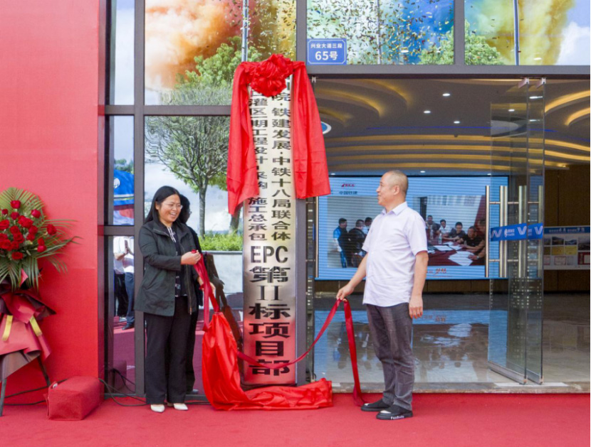 隆文非和文祥明為Ⅱ標(biāo)項(xiàng)目部揭牌